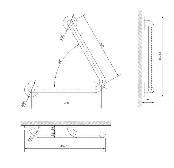 Поручень настенный под углом 60 градусов глянцевый 15069.B