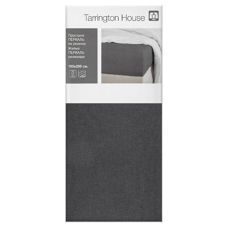 Tarrington House Простыня графит перкаль на резинке, 160 x 200см