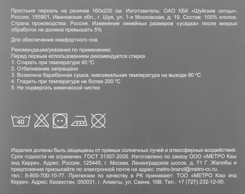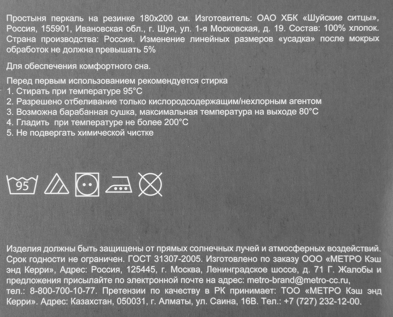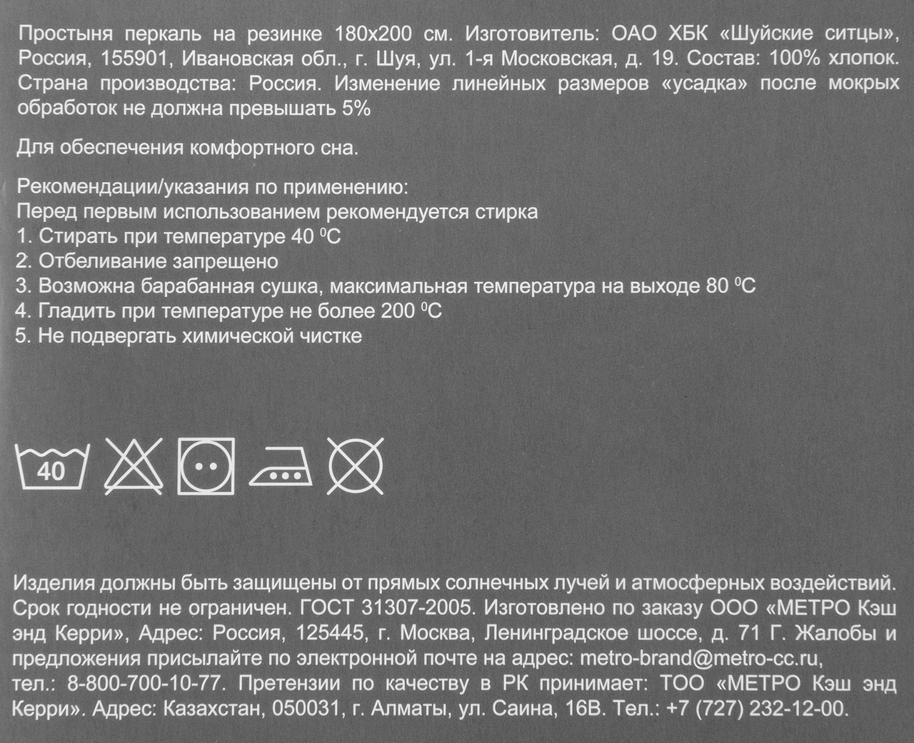 Tarrington House Простыня белая перкаль на резинке, 180 x 200см