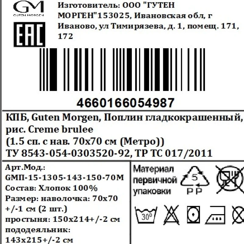 Комплект постельного белья Guten Morgen Creme Brulee из поплина полутораспальное