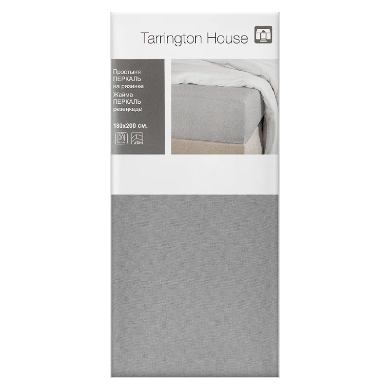 Tarrington House Простыня светло-серая перкаль на резинке, 180 x 200см