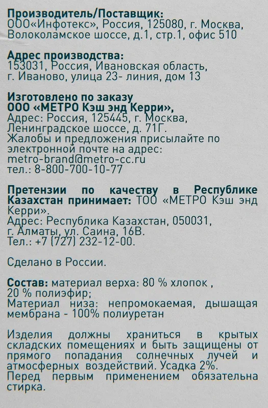 METRO PROFESSIONAL Пододеяльник сатин белый, 200 х 210см