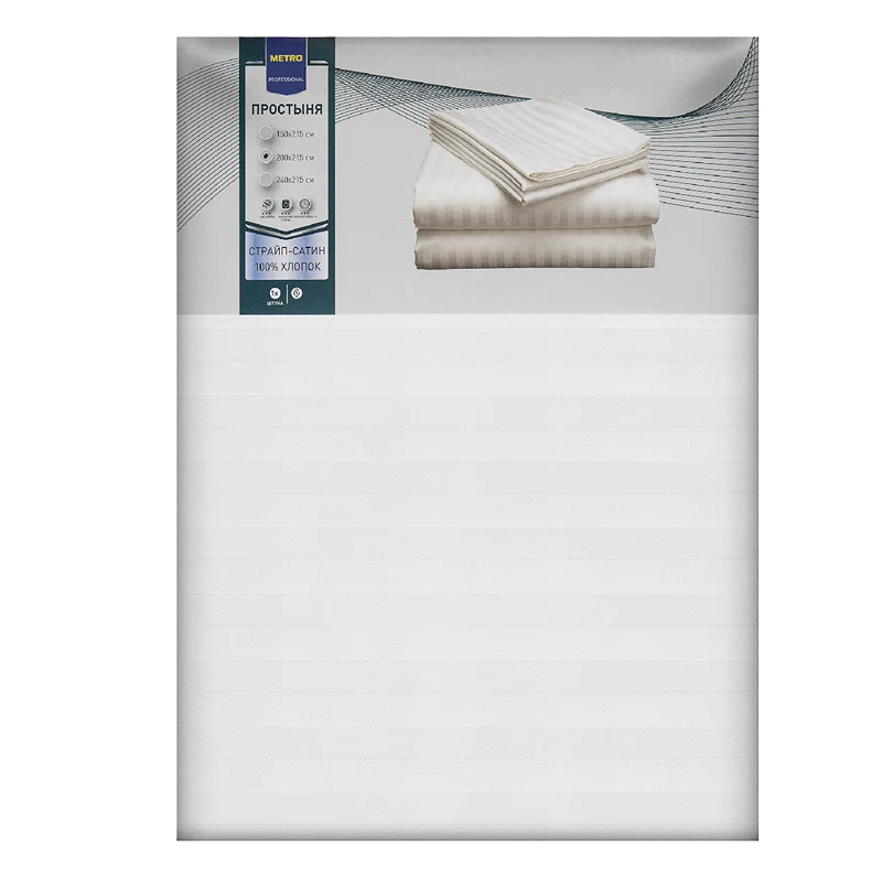 METRO PROFESSIONAL Простыня страйп-сатин, 200 х 215см