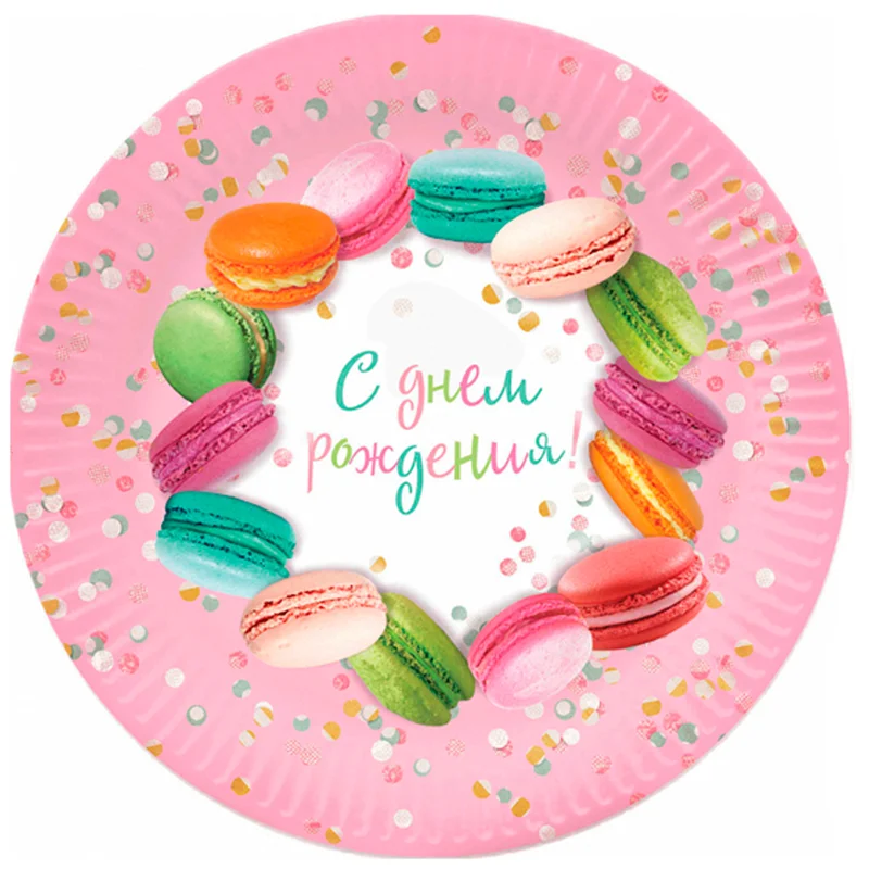 Тарелки бумажные ламинированные ПатиБум 'С Днем Рождения. Макаруны', 18см, 6шт.