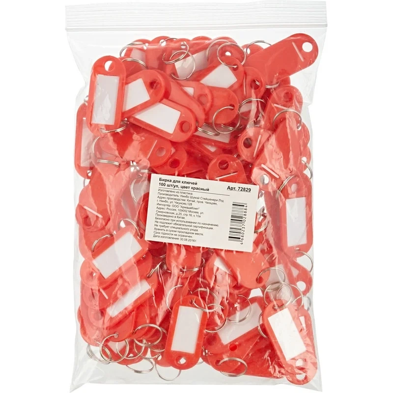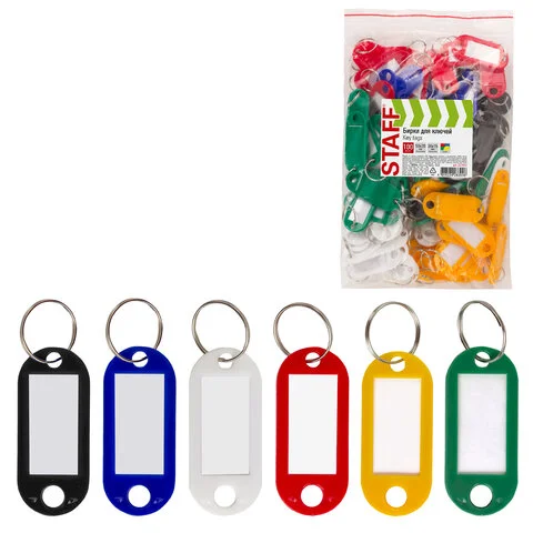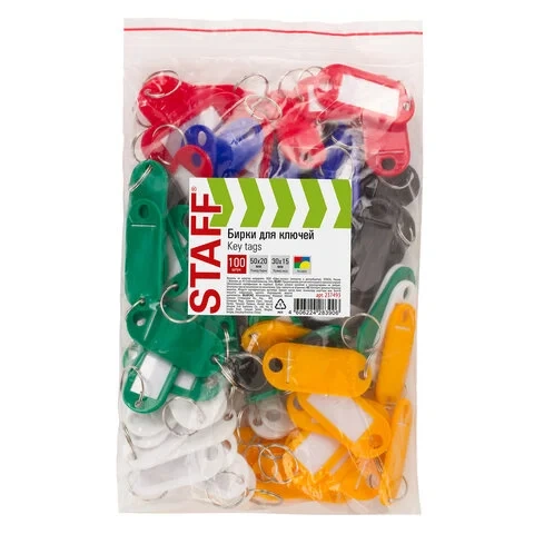 Бирки для ключей КОМПЛЕКТ 100 шт., длина 50 мм, инфо-окно 30х15 мм, АССОРТИ, STAFF, 2, 90