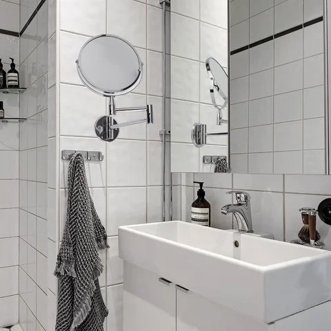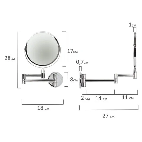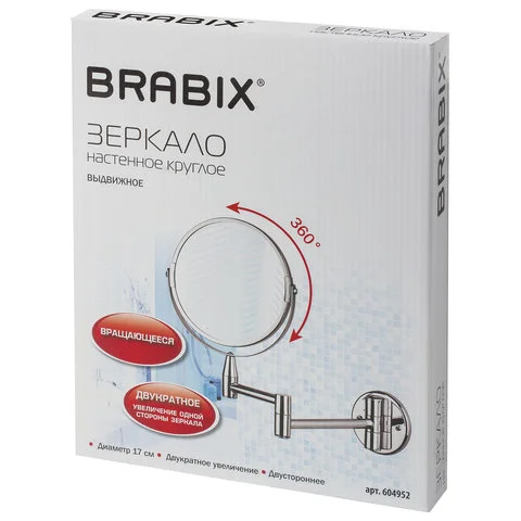 Зеркало настенное Brabix нержавеющая сталь, d=170мм, двухстороннее, с увеличением, выдвижное