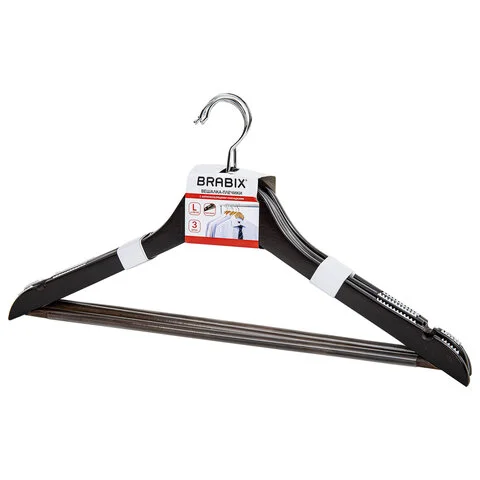 Вешалки-плечики с антикользящими накладками, КОМПЛЕКТ 3 штуки, размер 48-50, дерево, BRABIX, 607476