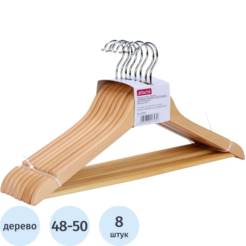 Плечики для одежды Attache 48-50 р, клен, с перекладиной, 8 шт/уп