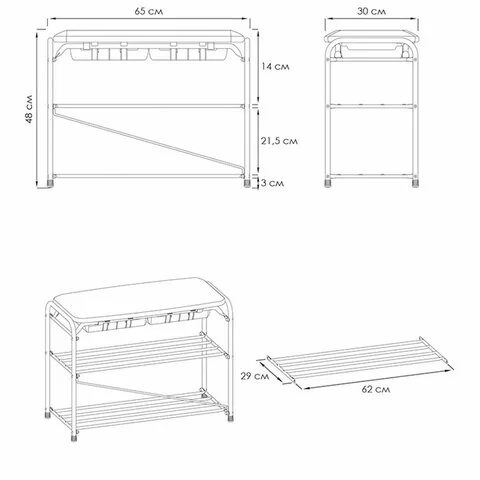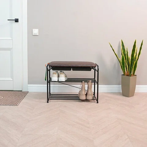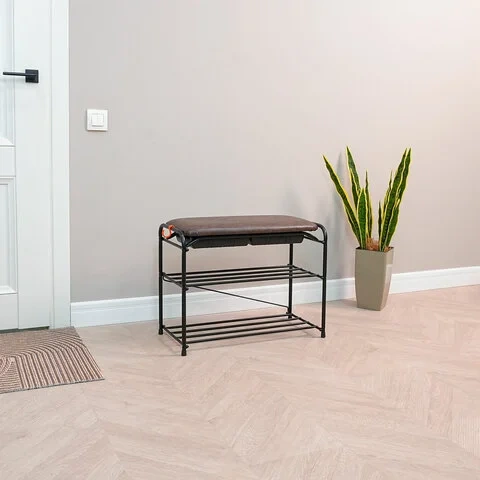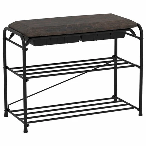 Банкетка для обуви 'Альфа-23СЯ', 650х300х480 мм, 2 полки, ящик, металл/кожзам, черный/коричневый, ПД