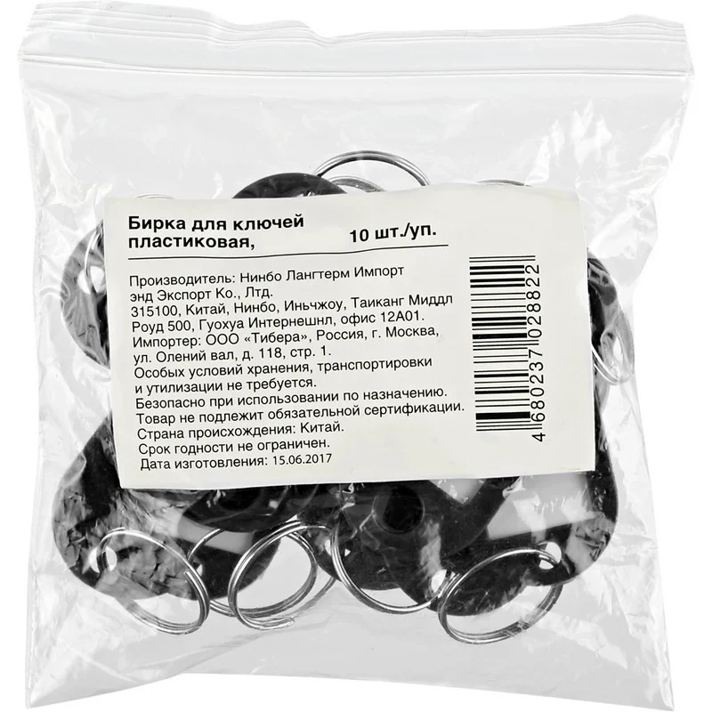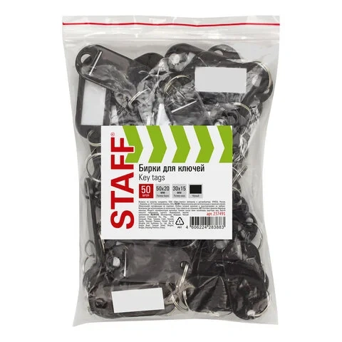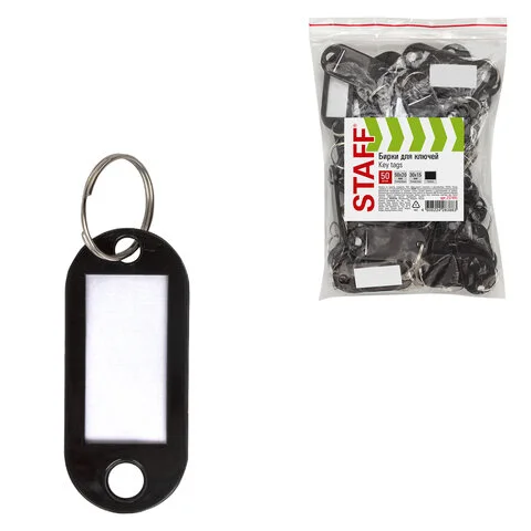 Бирки для ключей КОМПЛЕКТ 50 ШТ., длина 50 мм, инфо-окно 30х15 мм, ЧЕРНЫЕ, STAFF, 23х, 88