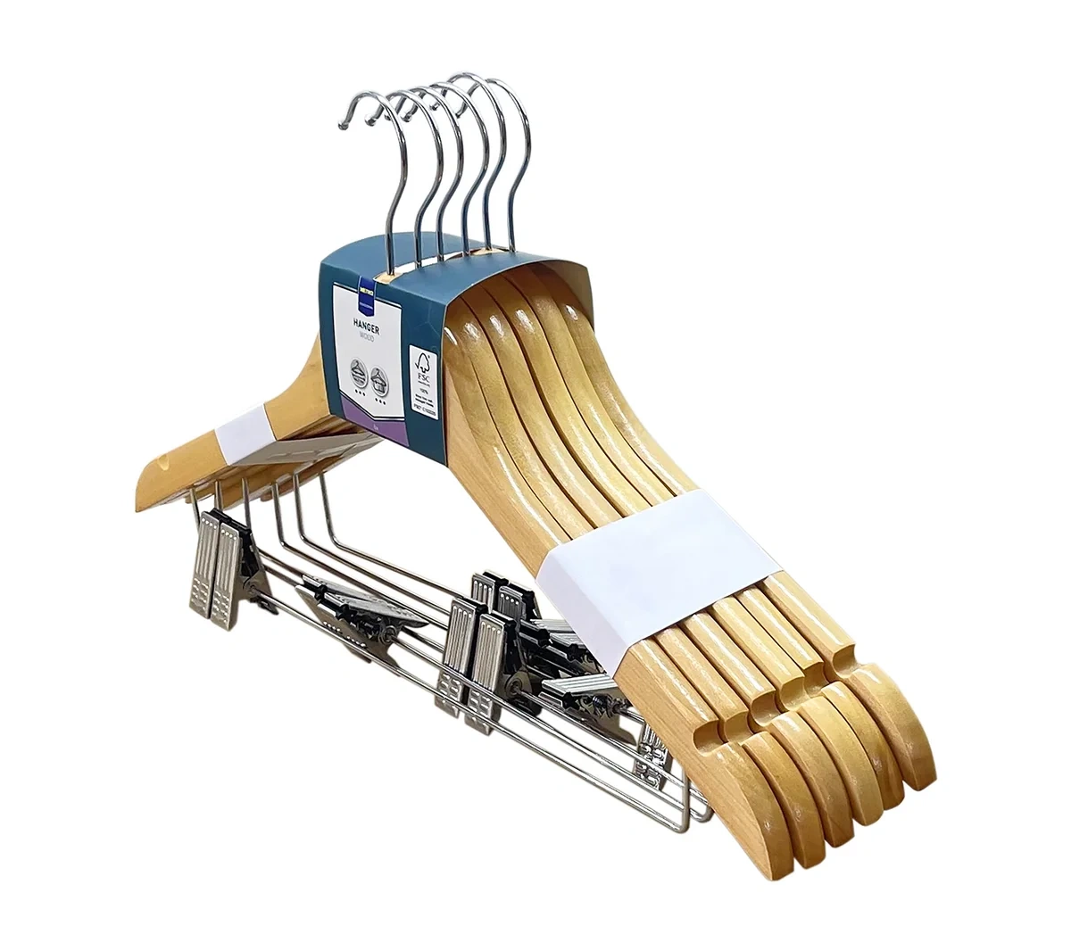 Плечики для одежды Metro Professional с металлическим зажимом, деревянные, 6шт/уп