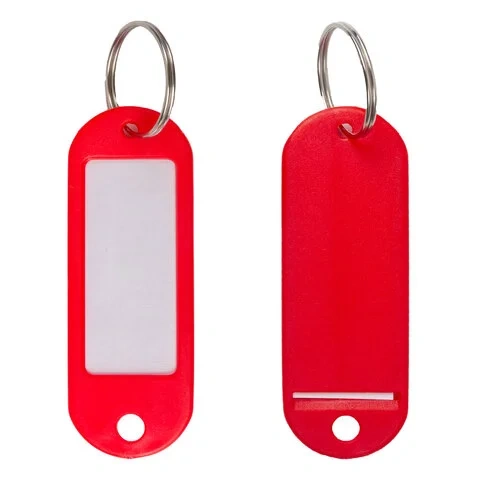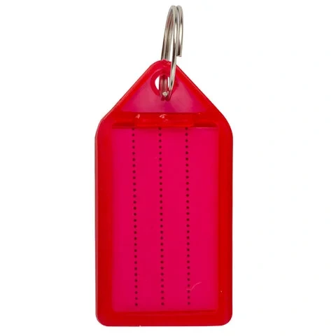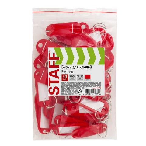 Бирки для ключей КОМПЛЕКТ 50 ШТ., длина 50 мм, инфо-окно 30х15 мм, КРАСНЫЕ, STAFF, 23, 89