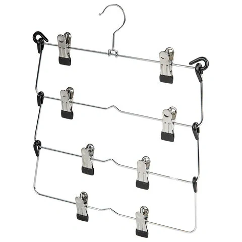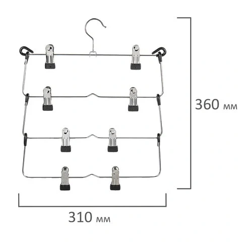 Вешалка-плечики качели, 4 секции, металлическая, с клипсами для юбок и брюк, BRABIX, 607472