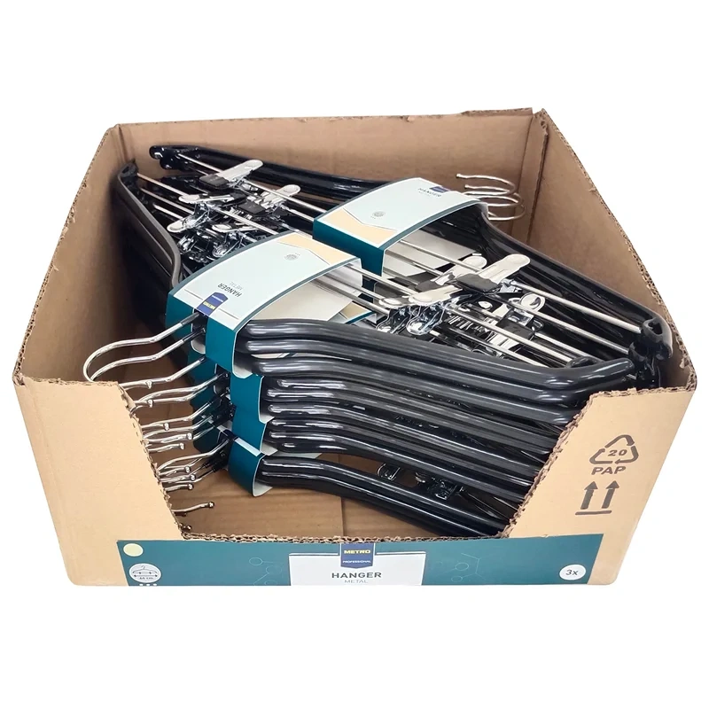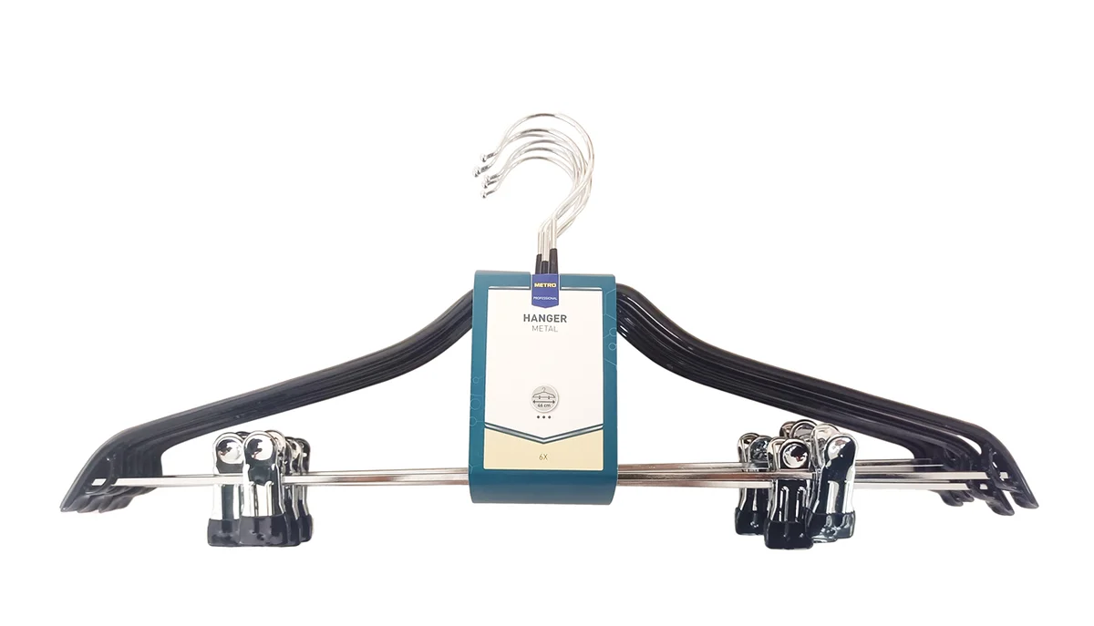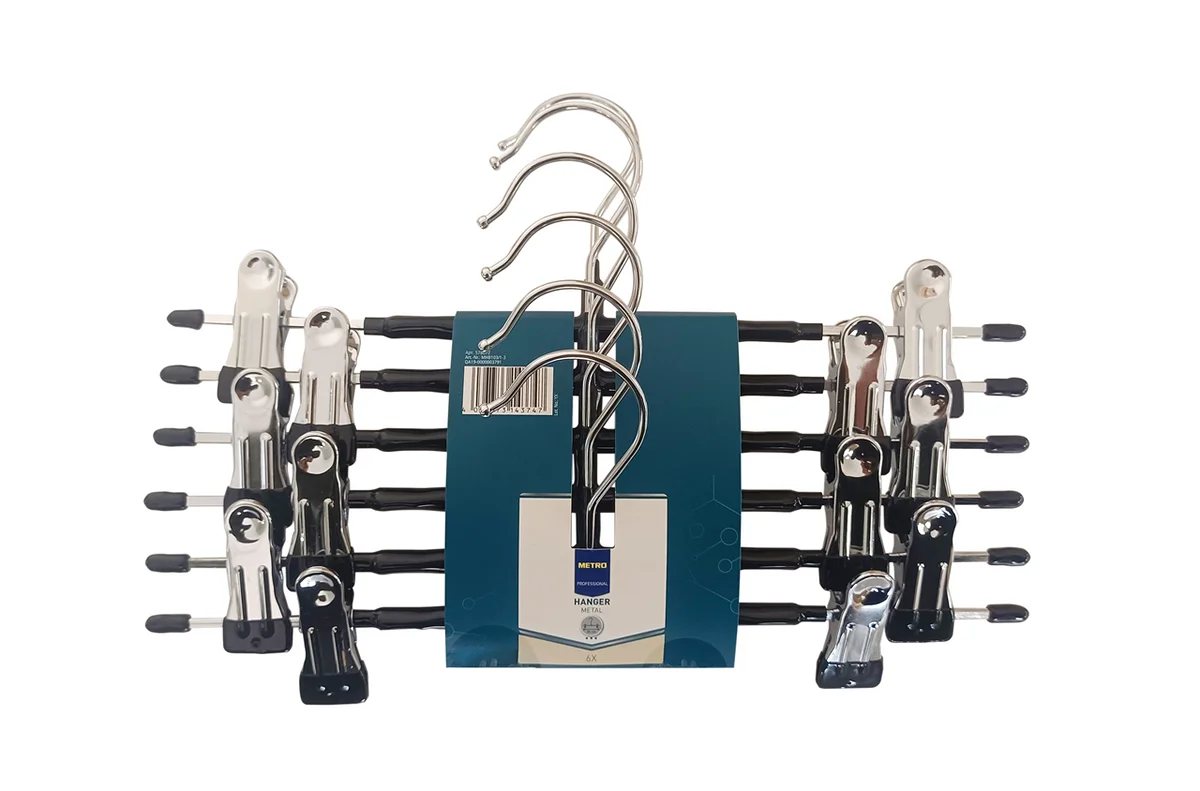 Плечики для одежды Metro Professional с металлическим зажимом, черные, 6шт/уп