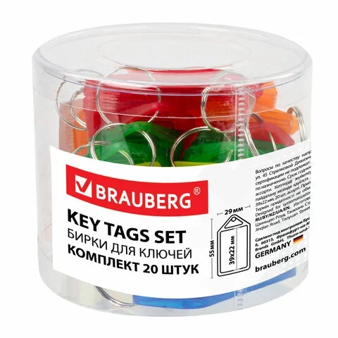 Бирки для ключей Brauberg ассорти, 20шт, длина 55 мм, инфо-окно 39х22 мм