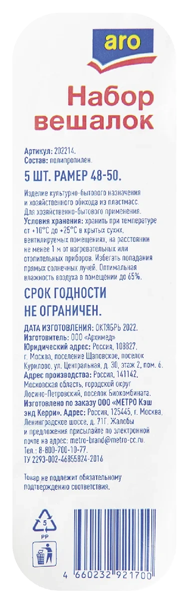 Плечики для одежды Aro ассорти, р.48-50, 5шт/уп