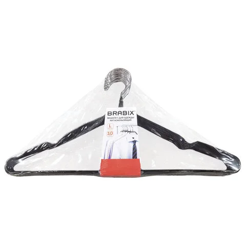 Плечики для одежды Brabix черные р.48-50, металл, антискользящие, 10шт