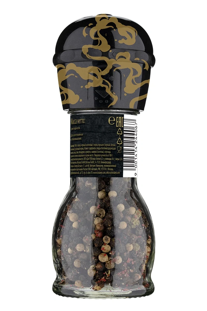 Знаменитая и всеми любимая приправа теперь дополнена копченым перцем. Композиция из 5 перцев придаст вашим блюдам умеренную остроту и пикантный вкус. Универсальна в использовании. Придаст более яркий и выразительный вкус блюдам из мяса, птицы, грибов, рыбы и овощей, подойдет для приготовления соусов, заправок и маринадов. Удобная форма мельницы позволяет измельчать содержимое непосредственно перед использованием, максимально сохраняя его вкусоароматические качества.