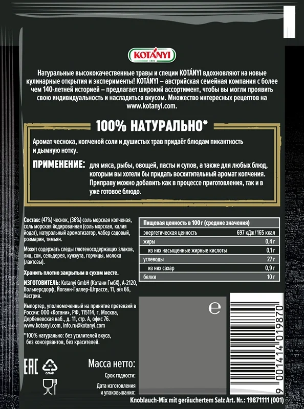 Приправа Kotanyi чеснок с копченой солью, 20г