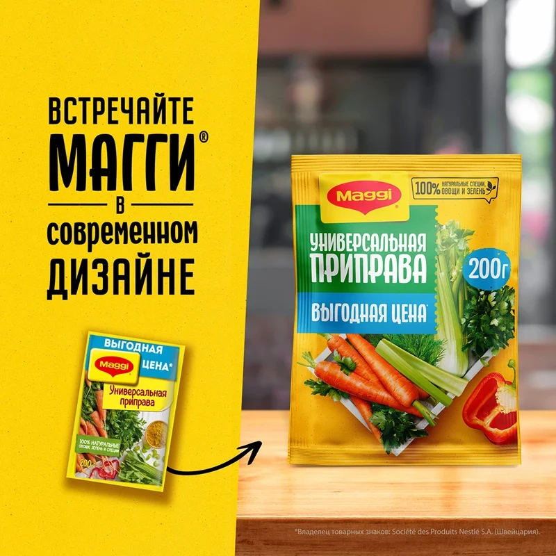 Обновленная Maggi Приправа универсальная теперь содержит только знакомые ингредиенты, спелые овощи, ароматная зелень, пряные специи и соль. Идеальное дополнение ваших любимых блюд, а большой упаковки хватит надолго. Используйте Универсальную приправу для приготовления разнообразных блюд из мяса, рыбы, овощей и круп, разнообразьте привычные блюда. Maggi - с заботой о важном. Только знакомые ингредиенты.