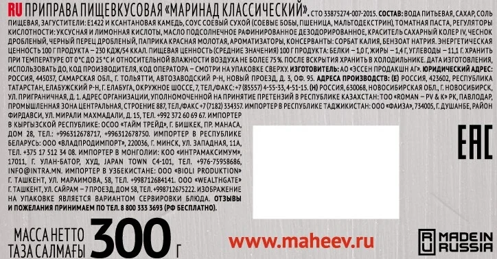 Приправа Махеевъ Маринад Классический, 300г