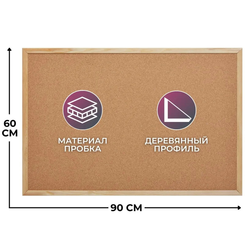 Доска пробковая 60х90 Attache Economy деревянная рама