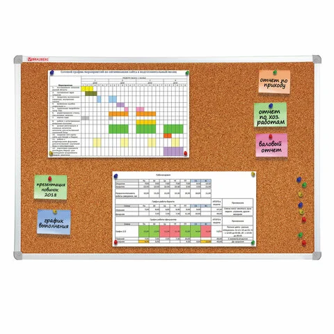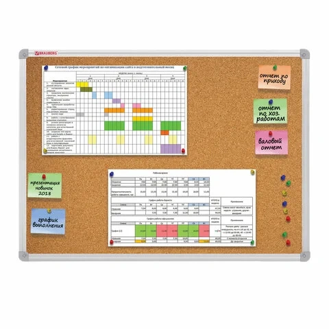 Доска пробковая Brauberg 100х150см, алюминиевая рамка