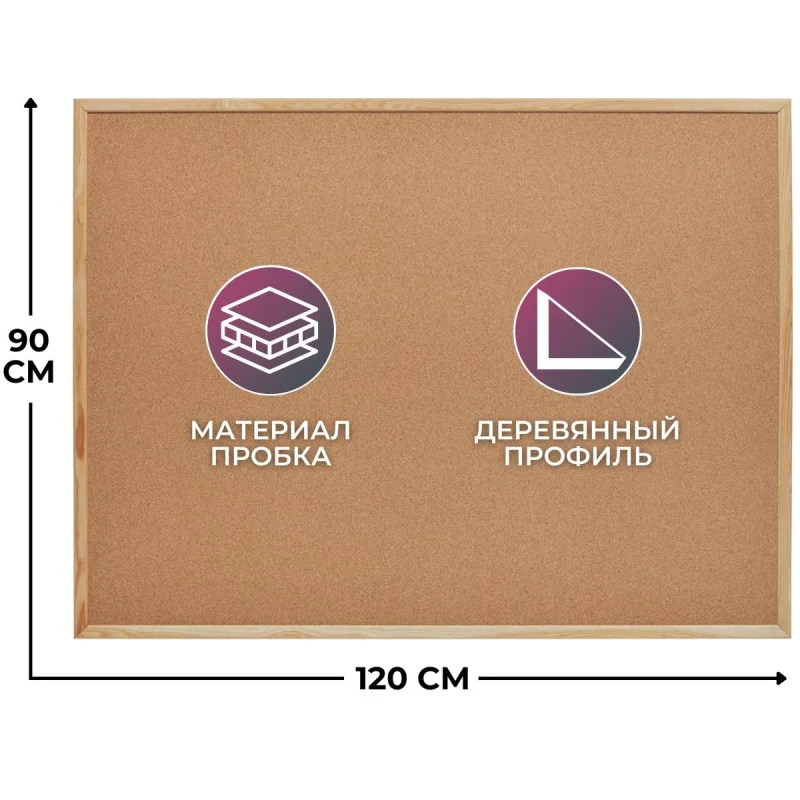 Доска пробковая Brauberg 90х120см, коричневая, деревянная рама