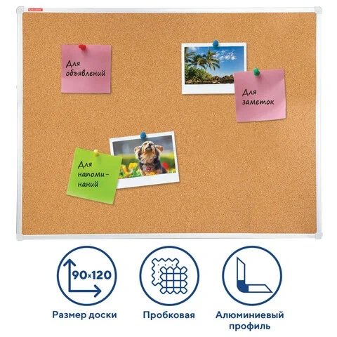 Доска пробковая Brauberg 90х120см, коричневая, алюминиевая рамка, 236445