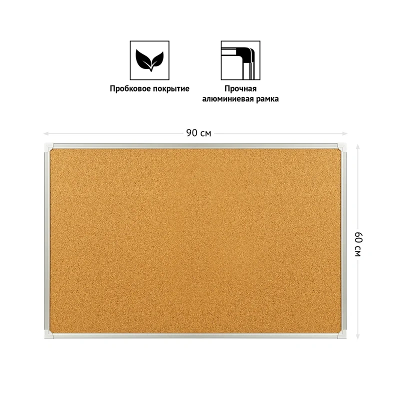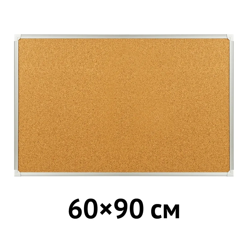 Доска пробковая Attache 60х90см, коричневая, алюминиевая рама
