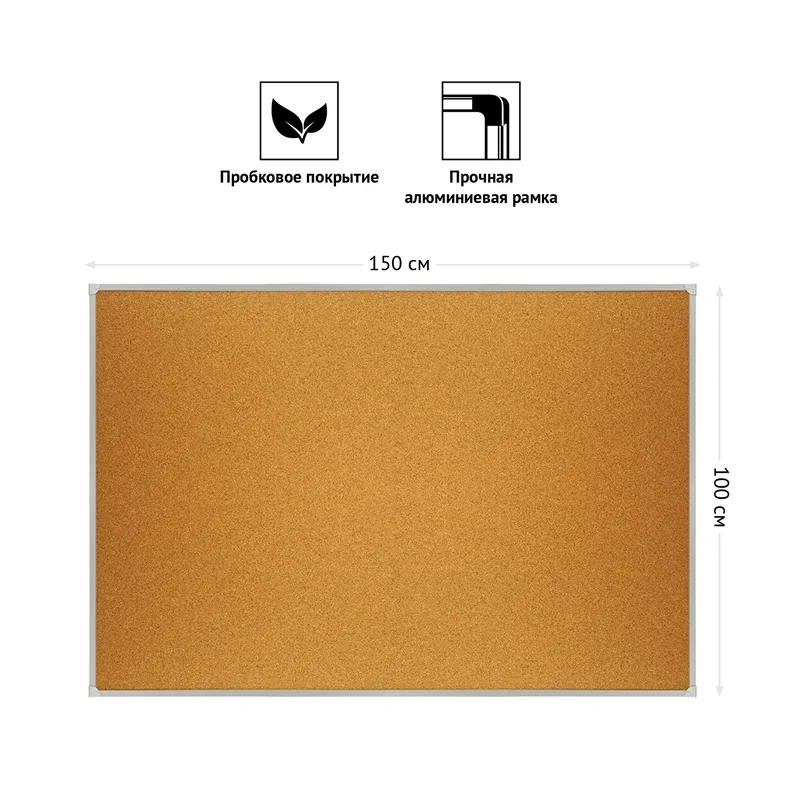 Доска пробковая Attache 100х150см, коричневая, алюминиевая рама