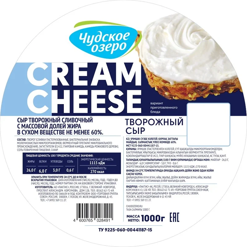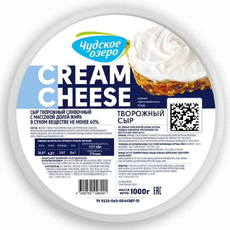Сыр для плавления обезжиренный (молоко обезжиренное пастеризованное, соль поваренная пищевая (содержит агент антислеживающий Е536), уплотнитель хлорид кальция, молокосвертывающий ферментный препарат микробиального происхождения, бактериальная закваска молочнокислых мезофильно-термофильных культур), масло сладко-сливочное несоленое (пастеризованные сливки), заменитель молочного жира (рафинированные дезодорированные растительные масла в натуральном и модифицированном виде, в том числе соевое, эмульгаторы: Е471, Е322, антиокислители: Е320, Е321), вода, соль пищевая, пищевая добавка Е452, регуляторы кислотности: Е331, консервант Е202.