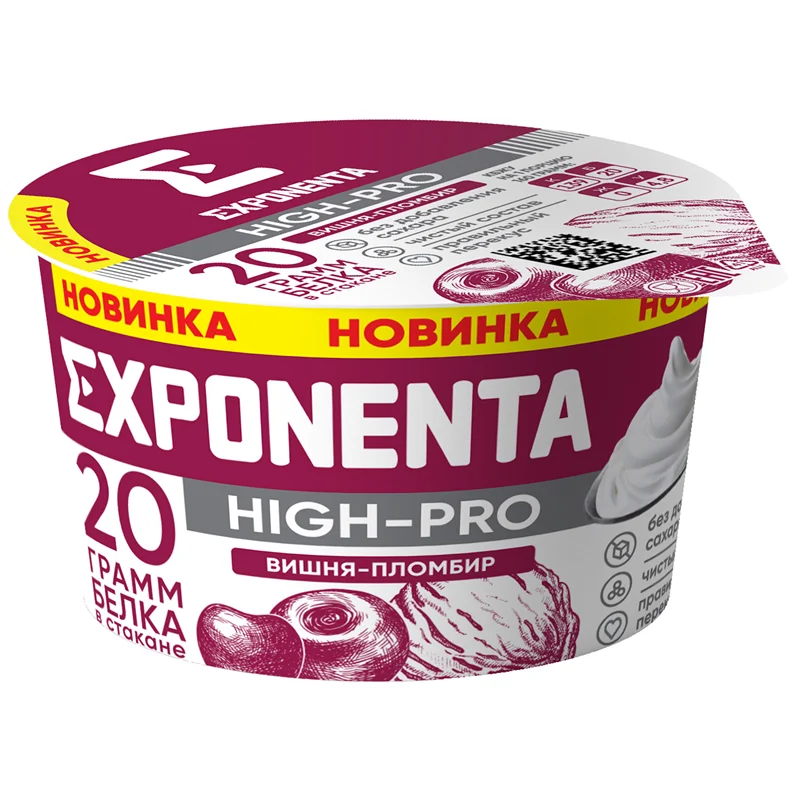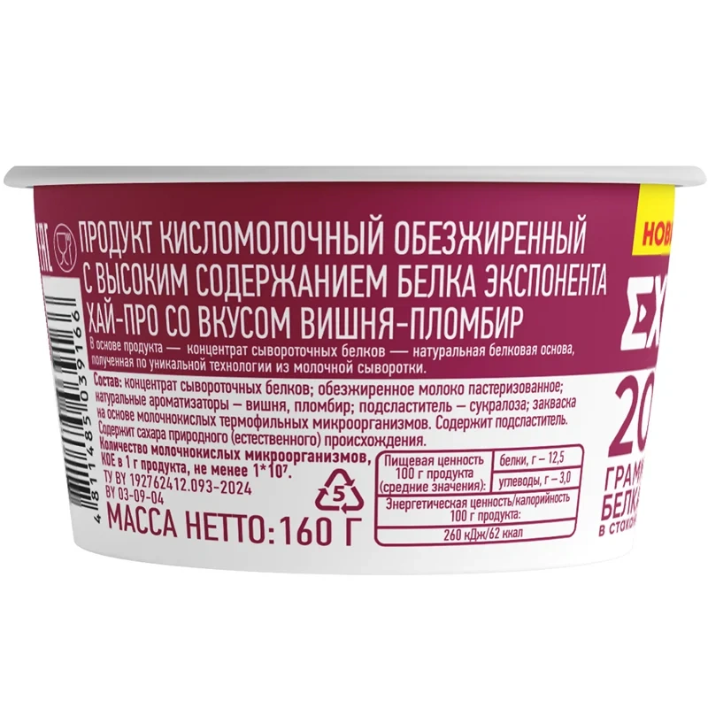 Продукт кисломолочный Exponenta High-pro Вишня-пломбир обезжиренный с высоким содержанием белка, 160