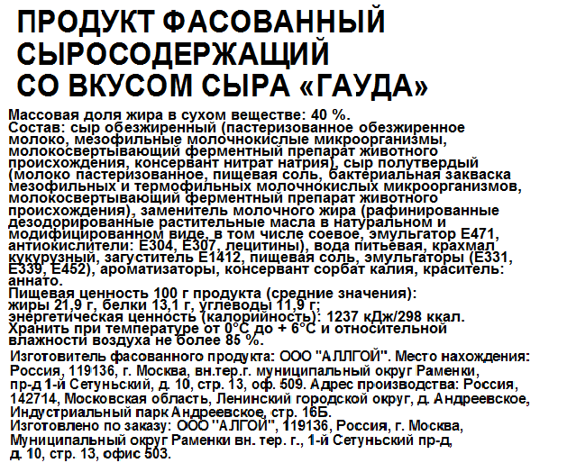 | Особенности состава | с заменителем молочного жира; с ароматизатором |