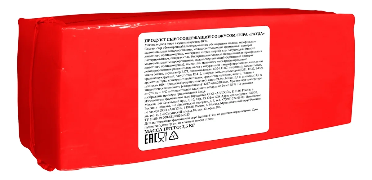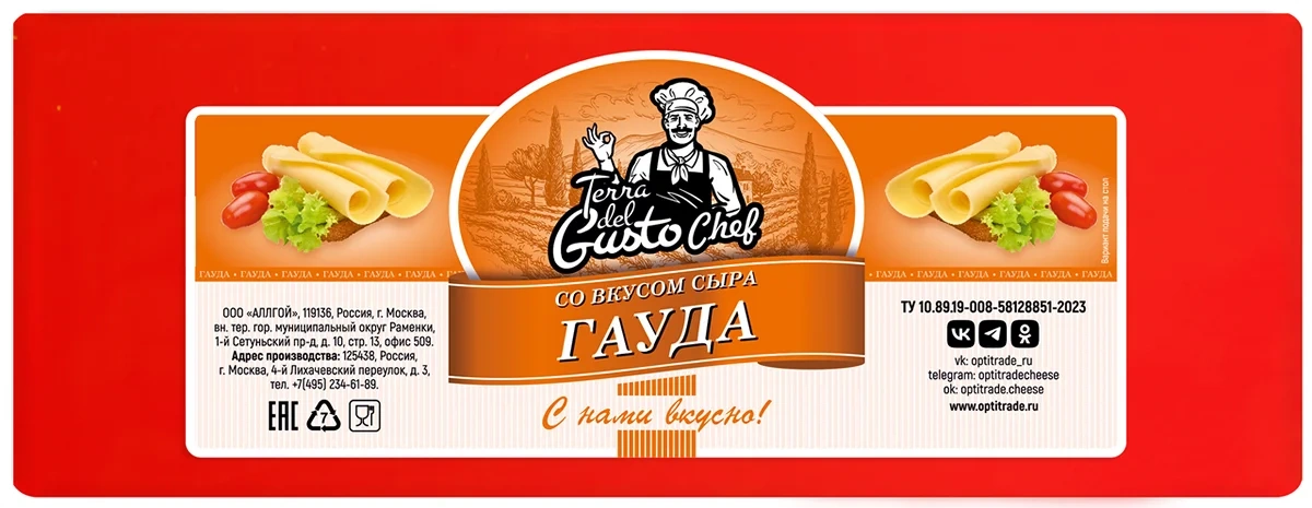 Продукт сыросодержащий Terra del Gusto гауда 40%, ~2.5кг