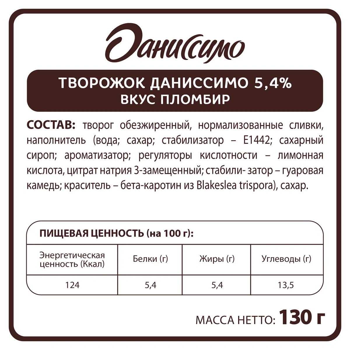 Продукт творожный Даниссимо пломбир 5.4%, 130г