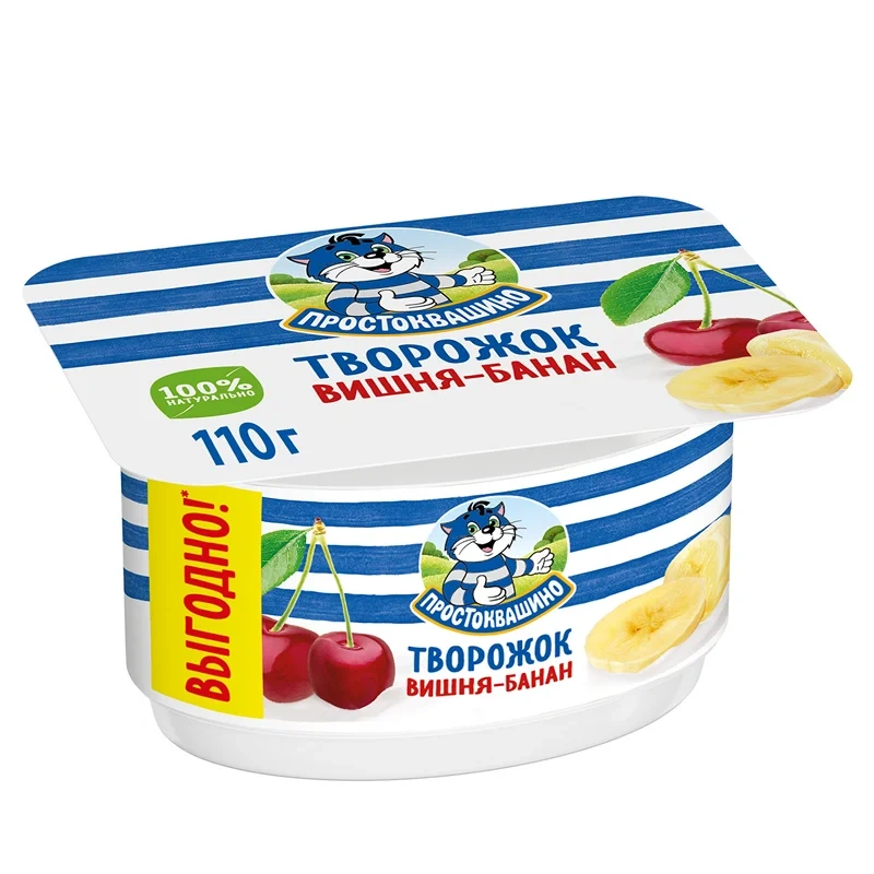 Продукт творожный Простоквашино вишня-банан 3.6%, 110г