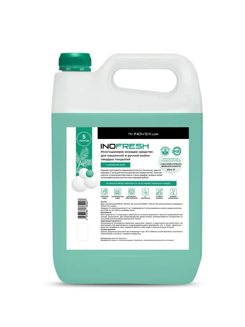 Универсальное чистящее средство Inovex Inofresh 5л, для машинной и ручной мойки, канистра