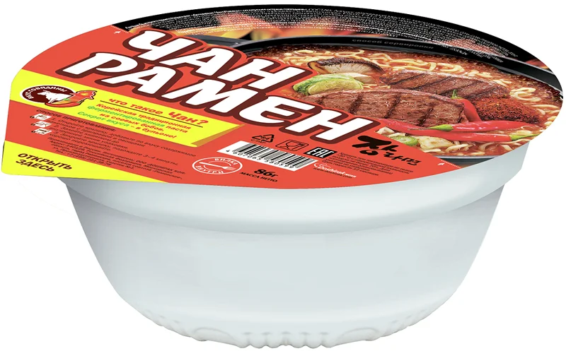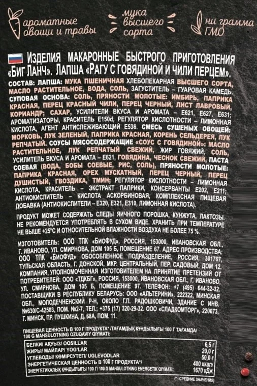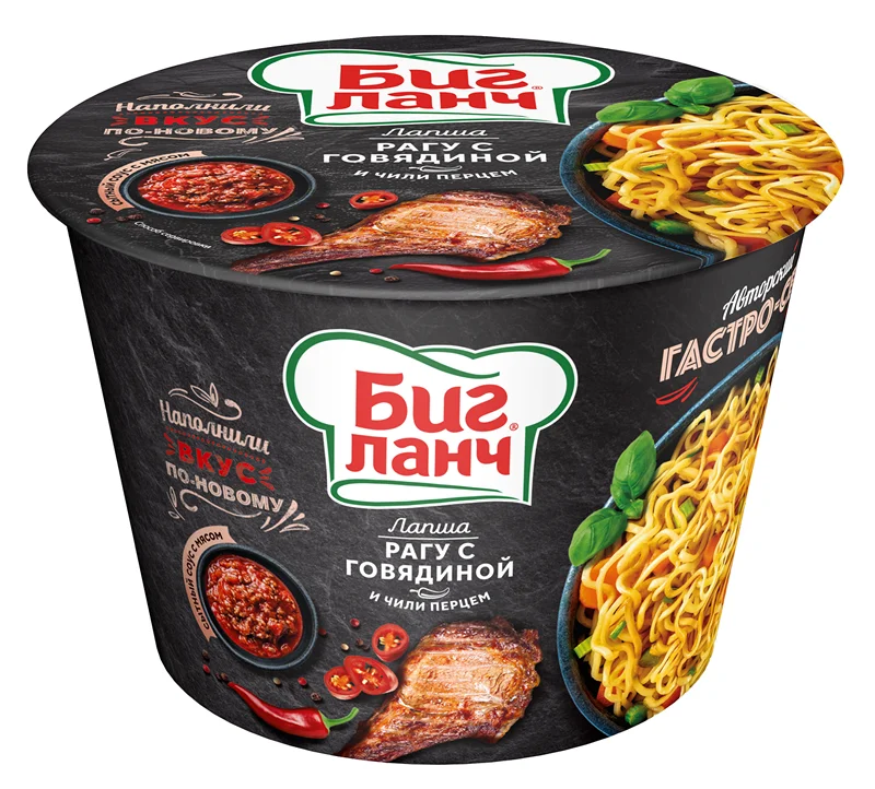 Лапша быстрого приготовления Биг Ланч с говядиной в остром соусе, 90г, ведро