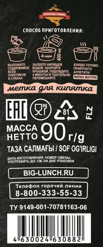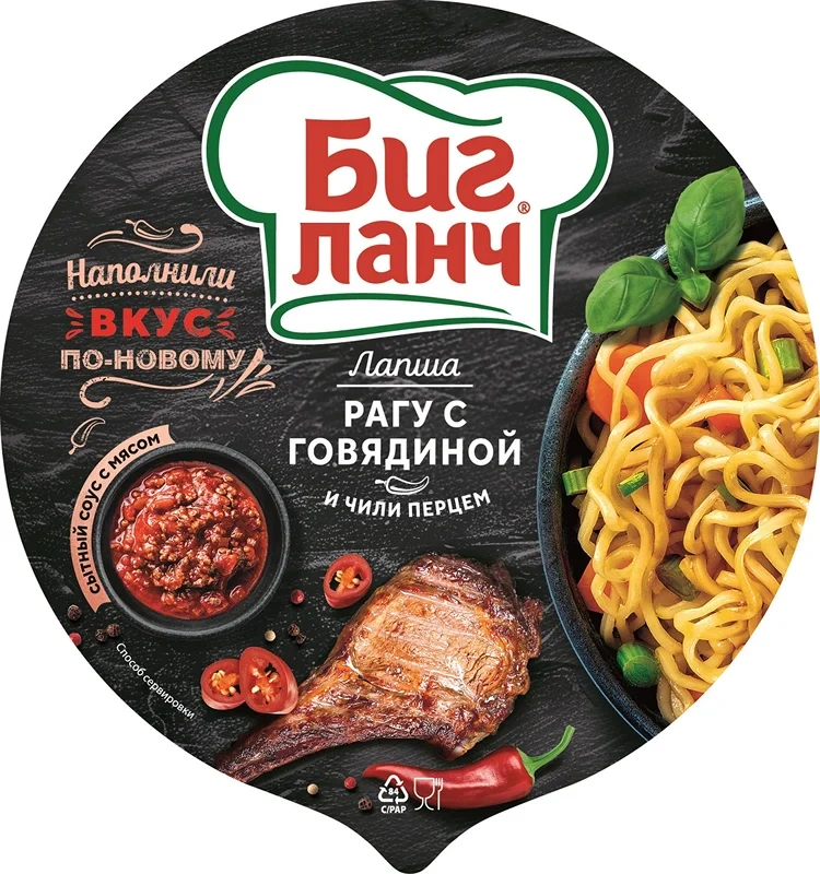 Лапша быстрого приготовления Биг Ланч с говядиной, грибами и зеленью, 75г
