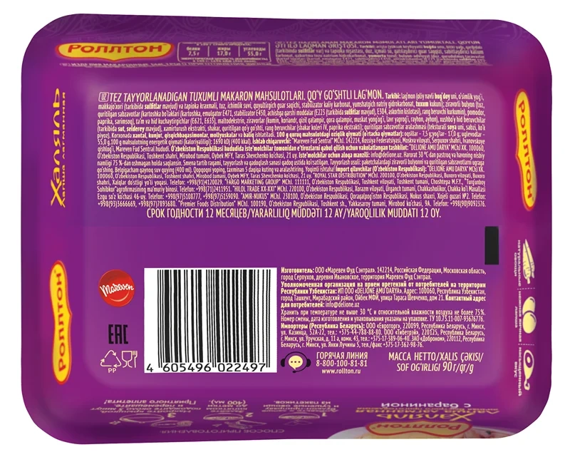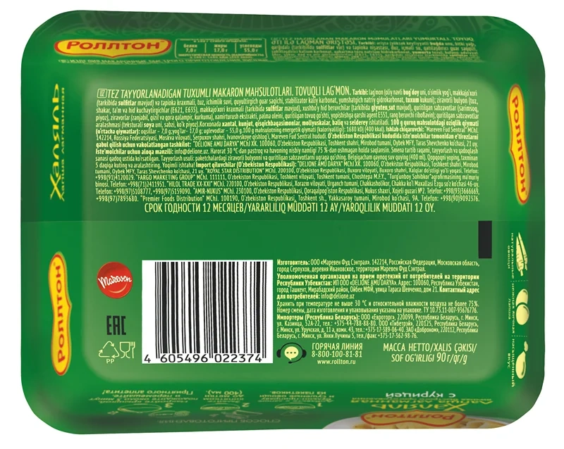 Лапша быстрого приготовления Роллтон Халяль лагманная с бараниной, 90г