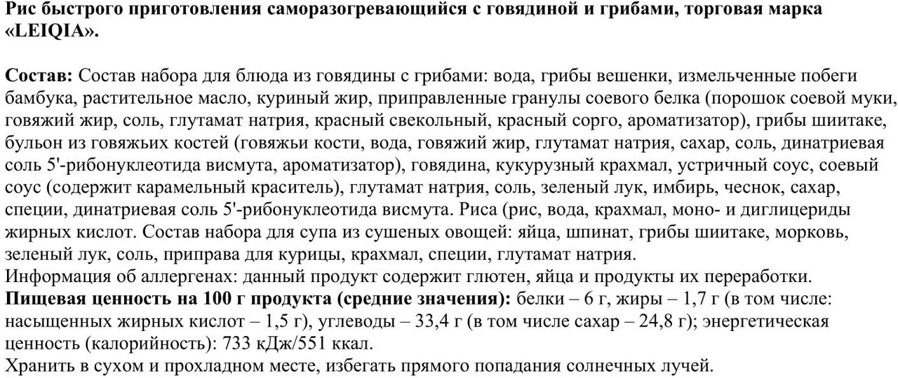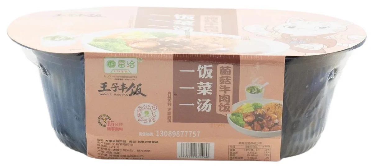 Рис быстрого приготовления Lei Qia саморазогревающийся говядина с грибами, 459г
