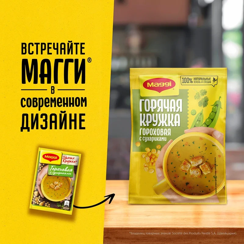 Суп Maggi Горячая кружка гороховый с сухариками, 19г
