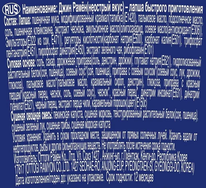 Лапша быстрого приготовления Оттоги Джин рамен, 65г