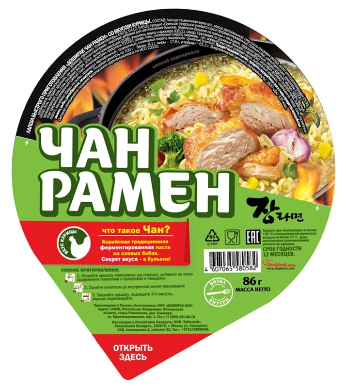 Лапша быстрого приготовления Доширак Суп чан рамен с курицей, 86г