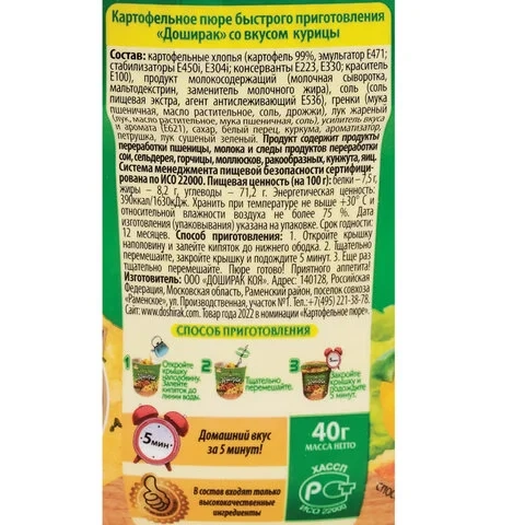 Пюре картофельное Доширак со вкусом курицы, 40г