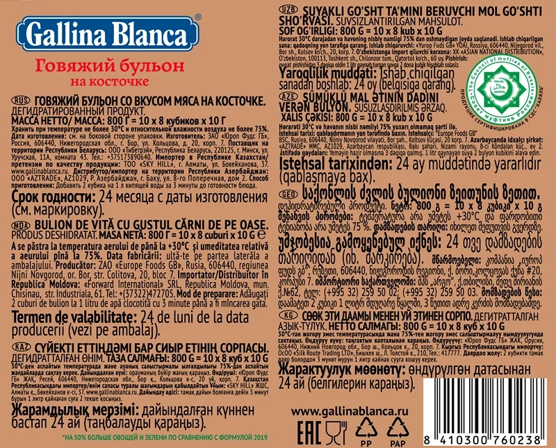 Кубики бульонные Gallina Blanca говяжий бульон на косточке, 10г