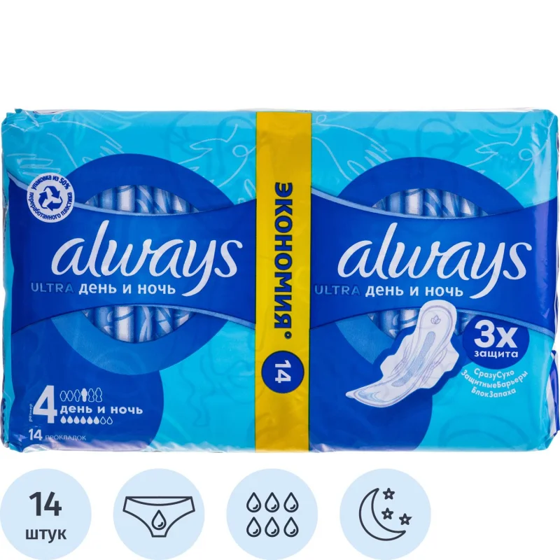 Прокладки женские гигиенические Always Ultra «День и Ночь» (14 штук в упаковке)