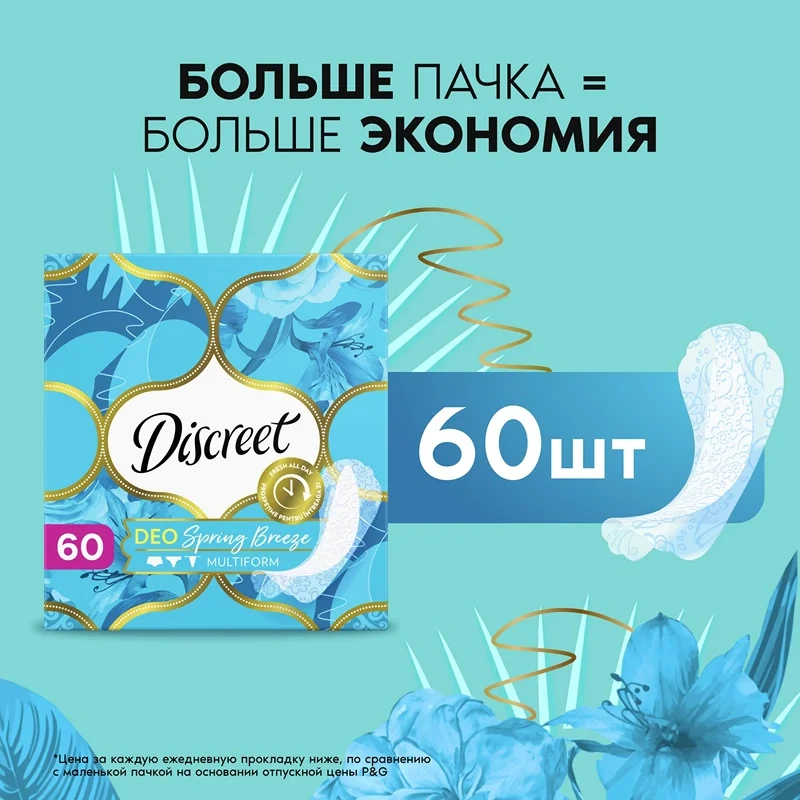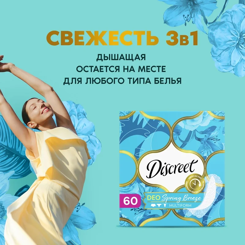 Прокладки ежедневные Discreet Deo весенний бриз, 60шт