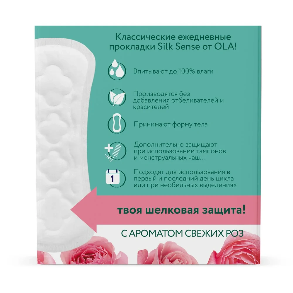 Прокладки ежедневные Ola! Silk Sense Daily с розой, 60шт